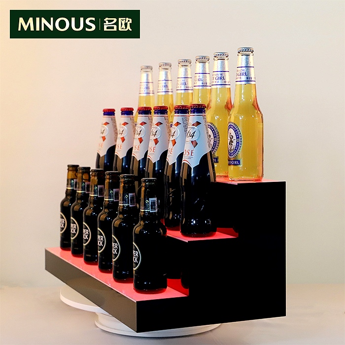 做成商品展示以及陈列,亚克力展示架是使用最为广泛的一种;LED五彩发光展示架内部安装FCC认证的电子配件,可遥控器控制灯光颜色,关注手机遥控APP就可以手机控制随意切换灯光颜色,外型也可定制各种造型,在五彩斑斓灯光的酒吧摆上一件七彩亚克力发光洋酒展示架那多应景,在各大品牌的洋酒市场中,一款时尚炫目的展示架肯定是加分项,更能吸引消费者们对展架上洋酒的好奇和探索欲望。