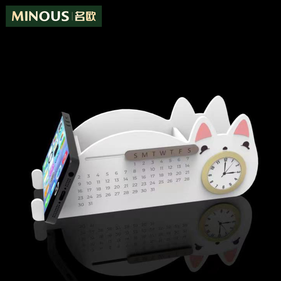 亚克力多功能猫咪笔架万年历手机支架
