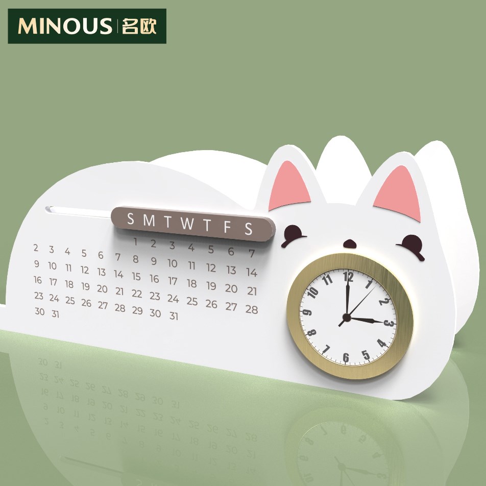 产品名称:多功能猫咪笔架万年历手机支架