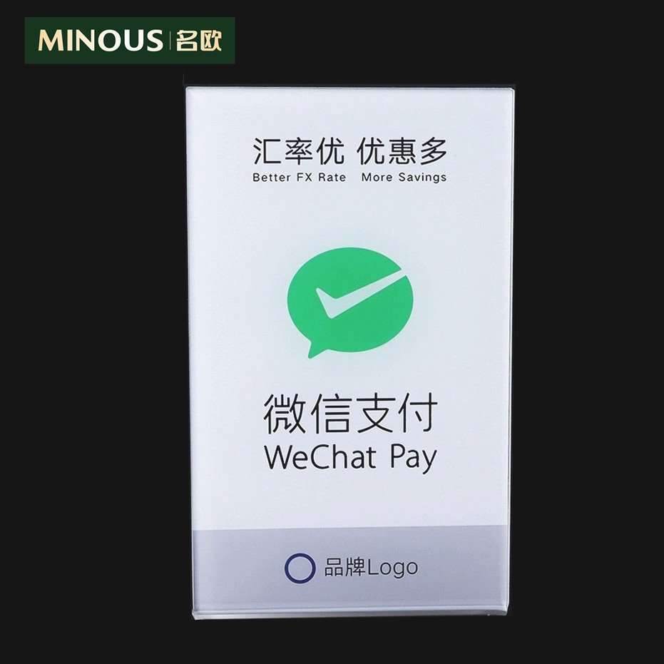 随着亚克力的不断发展每一款精致的亚克力制品都是经过手工精细打磨而成的,还可以根据不同的要求雕刻各种造型或印刷各种图案logo,亚克力材料透明度可达到92%-95%如水晶般晶莹剔透,这款二维码牌采用高精密激光雕刻(无凹凸不平感)+丝印(清晰可见不模糊)+热弯(圆润不刮手),#REF!亚克力采用全新浇筑进口优质原材料,持久耐用、耐腐蚀、不开裂、不易发黄、长久使用安全不易碎,透明材质通透十足让您拥有全新的体验感,是一个轻巧、美观、实用的二维码牌。